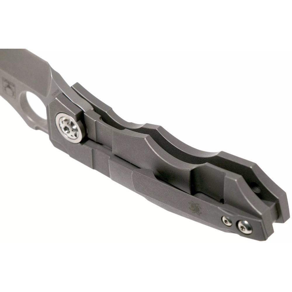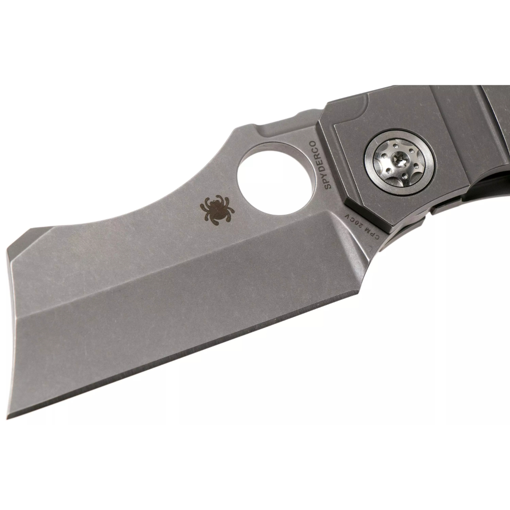 The Spyderco Stovepipe is a finely crafted folding knife, known for its robust cleaver-style blade made from advanced CPM-20CV stainless steel, offering exceptional wear and corrosion resistance. The handle is constructed from solid titanium with an industrial-style stonewashed finish and a secure Reeve Integral Lock (R.I.L.) mechanism. This knife pays homage to David Rydbom's custom design, making it a standout addition to Spyderco's product line.