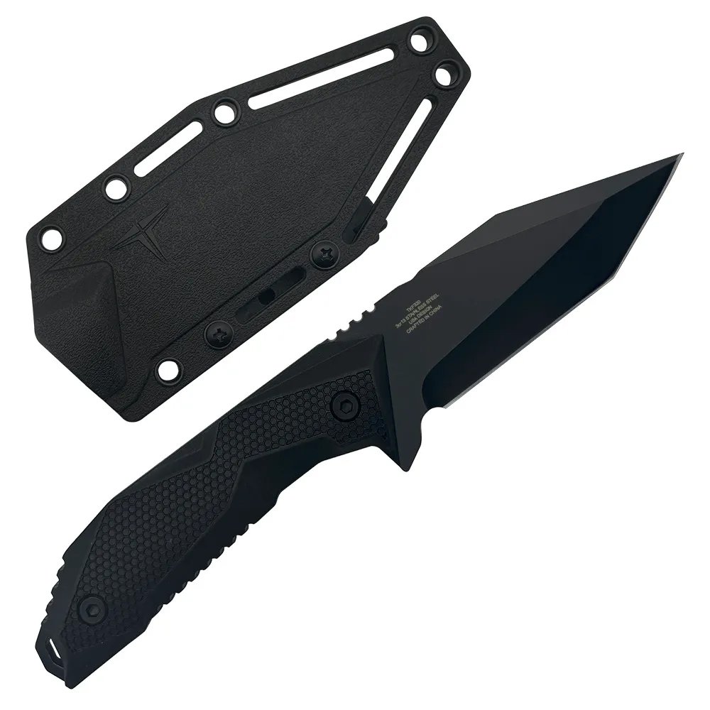 Tactical Modified Tanto Fixed Blade Knife features a full tang construction designed for durability and dependable everyday performance. The professionally heat-treated 3Cr13 steel blade balances hardness and toughness for reliable cutting strength, while the modified tanto blade shape and black oxide finish provide controlled penetration and reduced glare. Paired with an FRN handle and pressure-retention sheath with MOLLE clip, this fixed blade is ready for tactical, outdoor, and utility use.