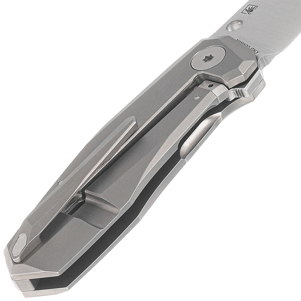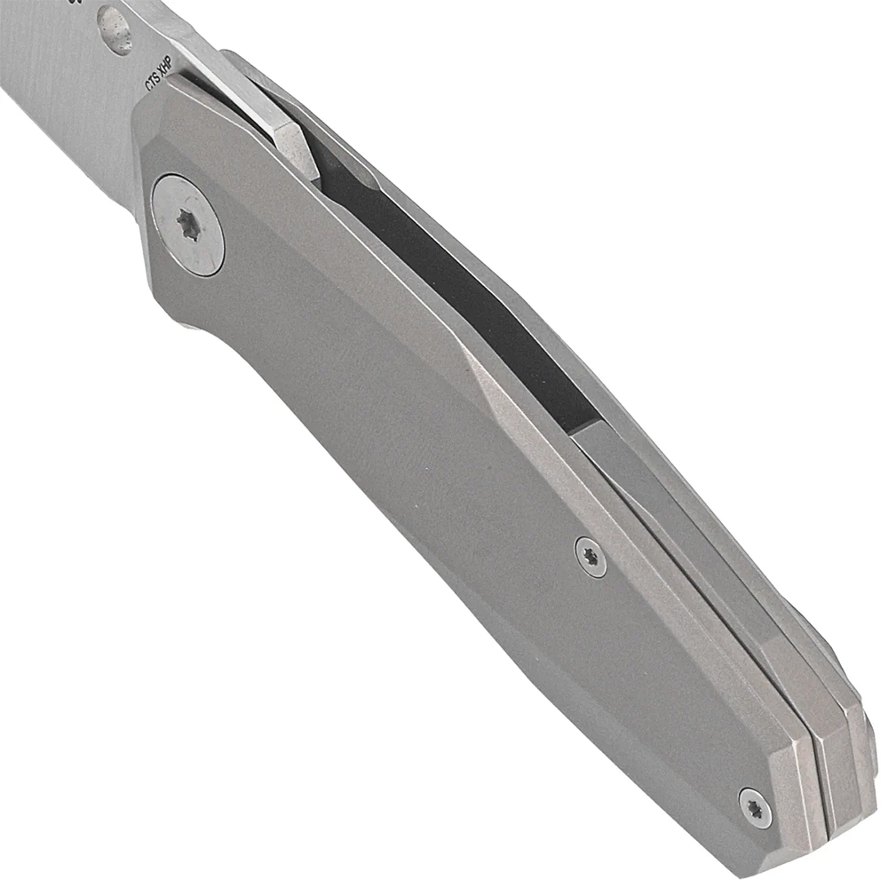 The Techno 3’s blade is made from CTS® XHP stainless steel, boasting a high flat grind, satin finish, and stylish swedge for enhanced cutting performance and point utility. Its titanium handle scales are expertly machined with faceted chamfers for improved ergonomics. Designed for right-side, tip-up carry, the Techno 3 is a faithful translation of Marcin Slysz’s custom design into a practical cutting tool.