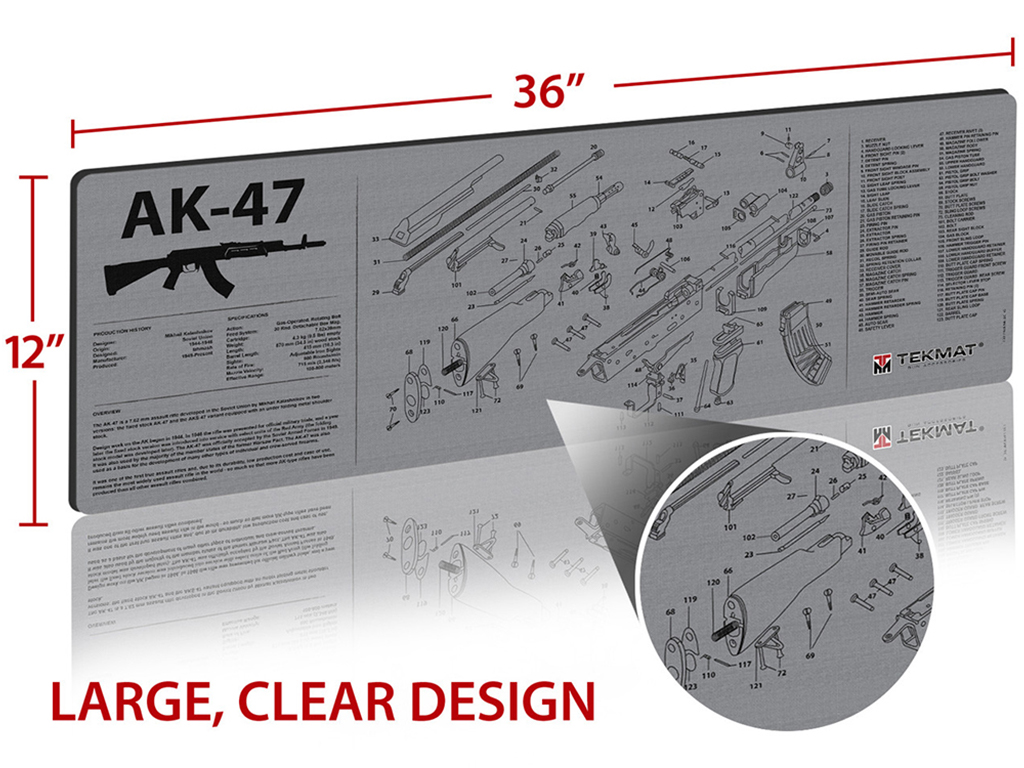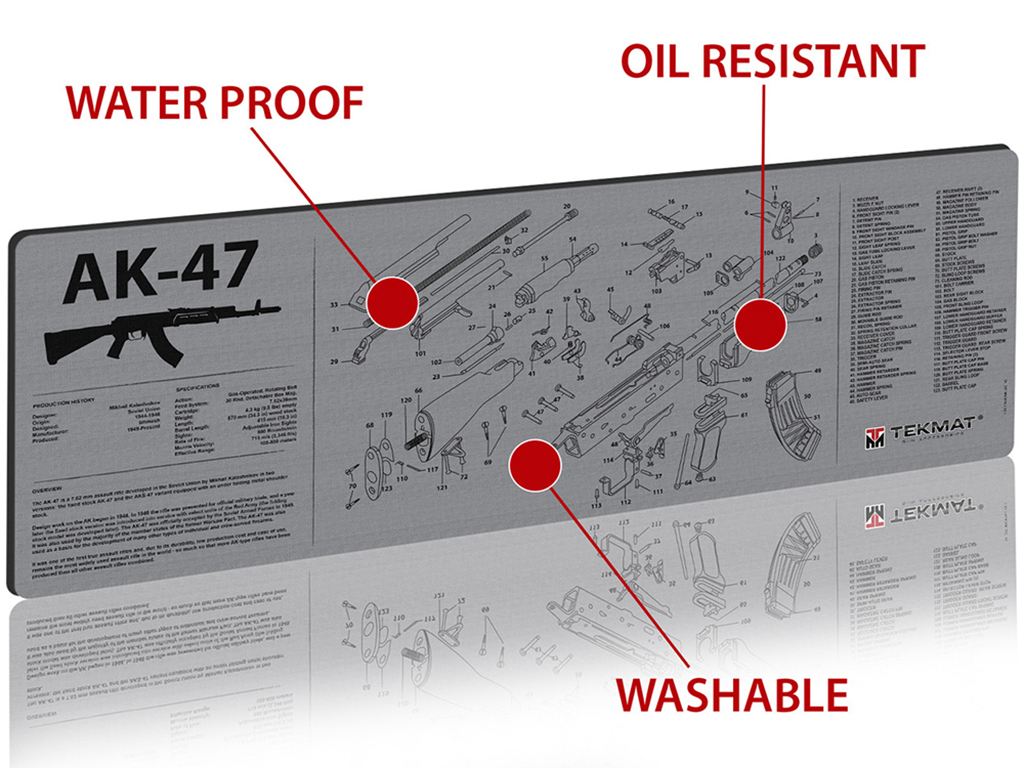 The TekMat AK47 Gun Cleaning Mat offers reliable protection, durability, and a spacious work area designed specifically for maintaining your AK47 rifle.