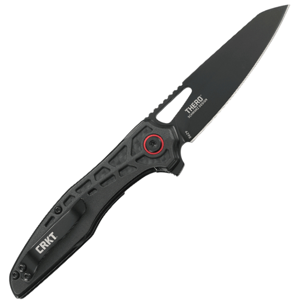 Named after a group of "beast-footed" dinosaurs called theropods, this everyday carry has the look of a museum relic and an aggressive, lightweight design that's all 21st century. The high-carbon stainless steel modified sheepsfoot blade features a black oxide finish that's tough against wear and rust. It’s balanced by a glass-reinforced nylon handle with a carbon fiber underlay for aesthetic and toughness. The blade opens quickly with either a flipper or a thumb hole and is held solidly in place with a locking liner.