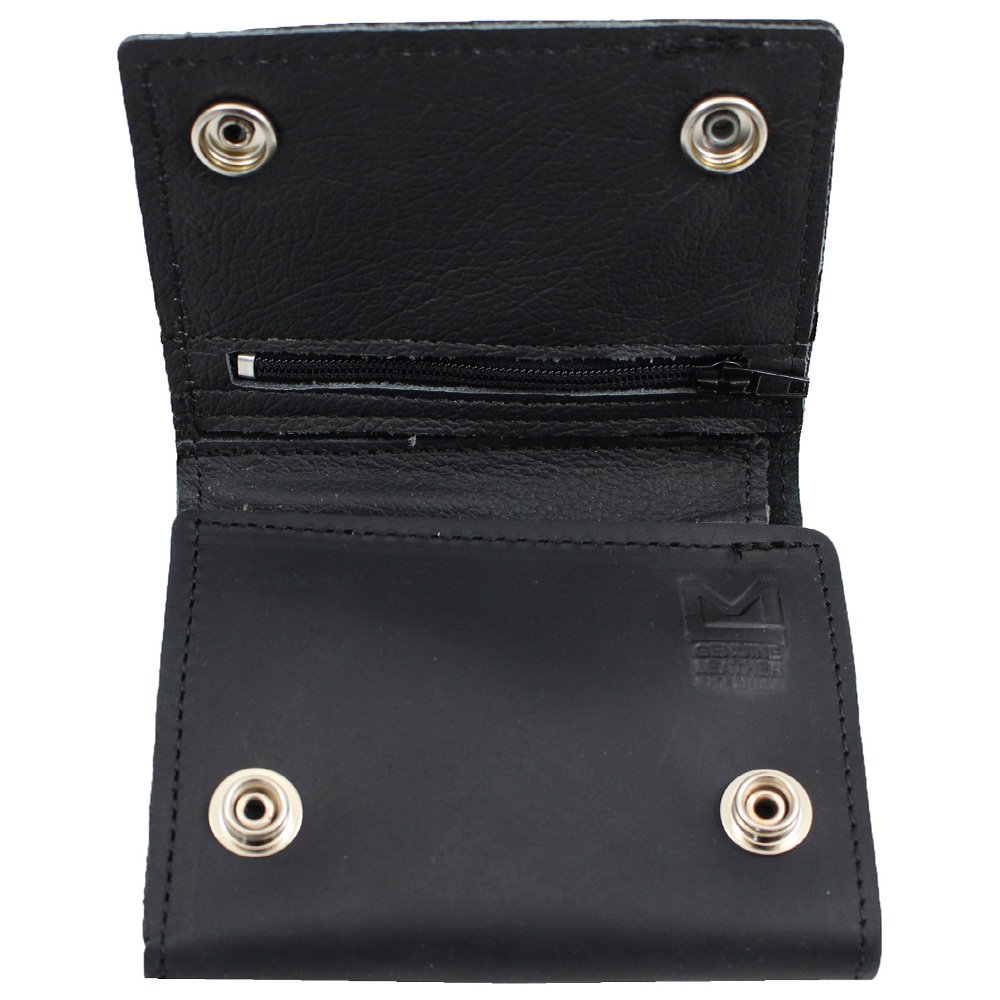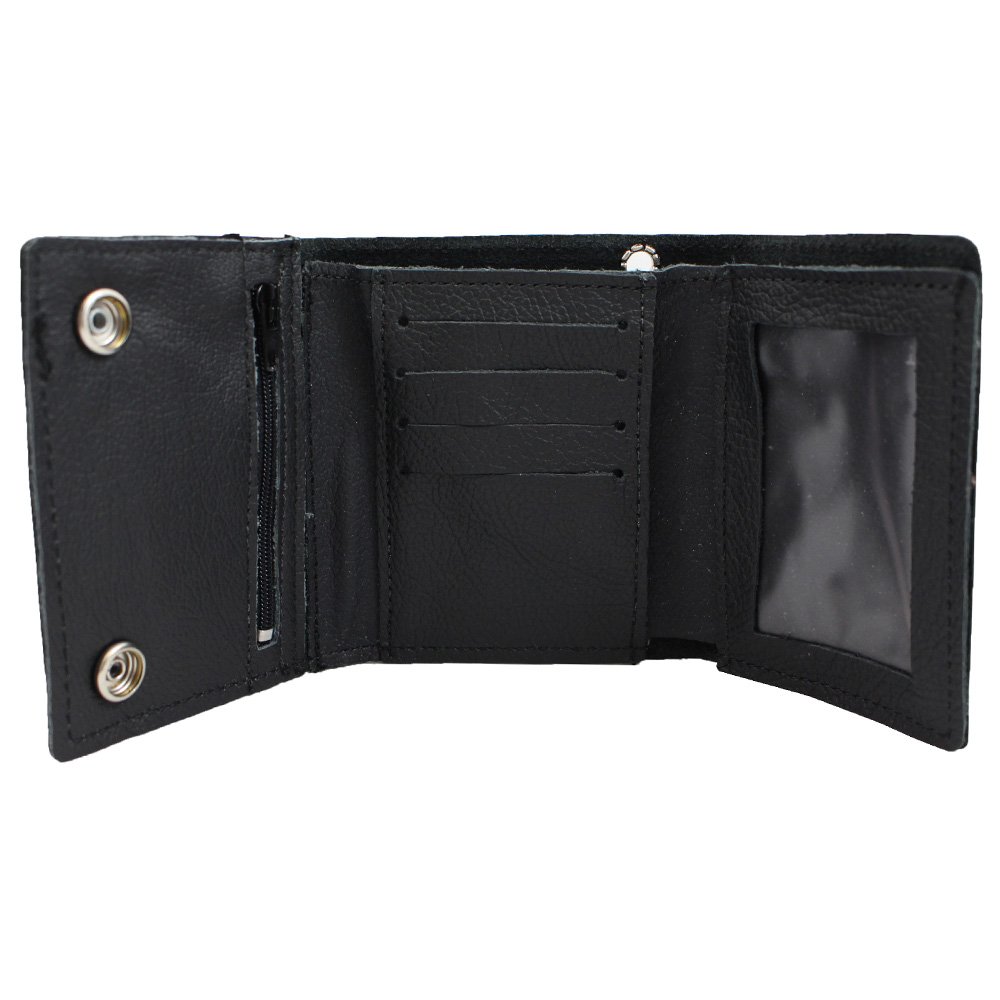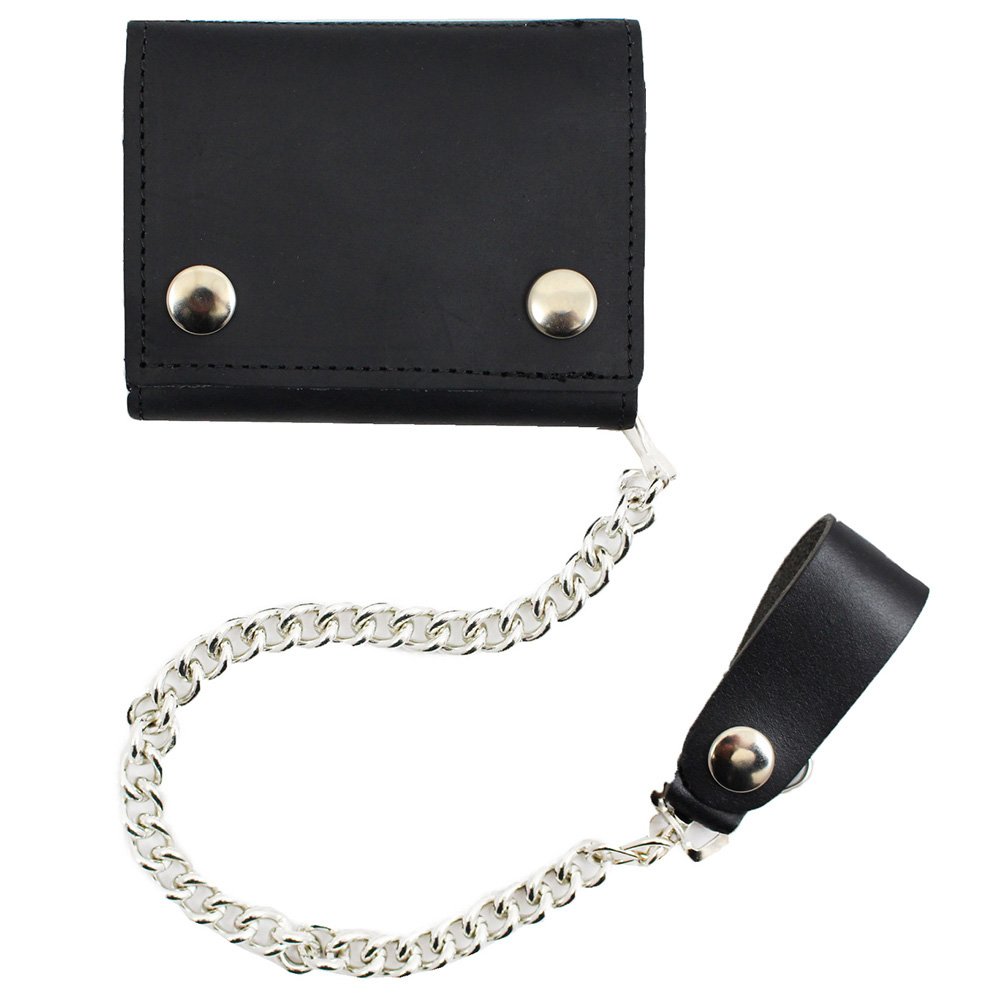 Pay your bills in style with the Tri-Fold Leather Chain Wallet. This high quality billfold is made of genuine leather material and features multiple slots and pockets inside for organization. The included 305 mm (12 inch) metal chain can be attached to a belt loop or bag for easy access.