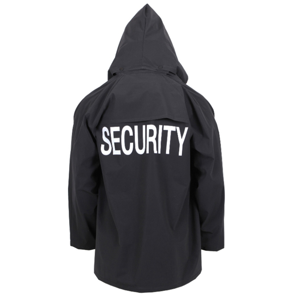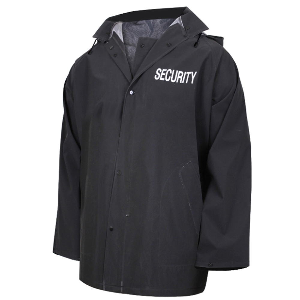 Ultra Force’s Security Rain Jacket keeps security professionals cool and dry with a water-resistant composition, multiple ventilation slots, and a detachable drawstring hood.