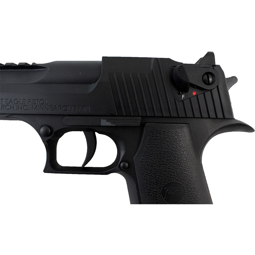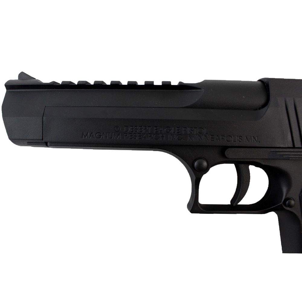 Umarex Desert Eagle is a very close replica to the real actual Magnum Research Desert Eagle with licensed trademarks and most everything in all the right places. However, other than the safety lever, many of the mechanical aspects of the gun are either non-functioning or serve an alternative purpose. The slide release actually opens the loading bay by making the barrel slide forward. The disassembly lever is non-functioning and is molded into the plastic along with the magazine release button.