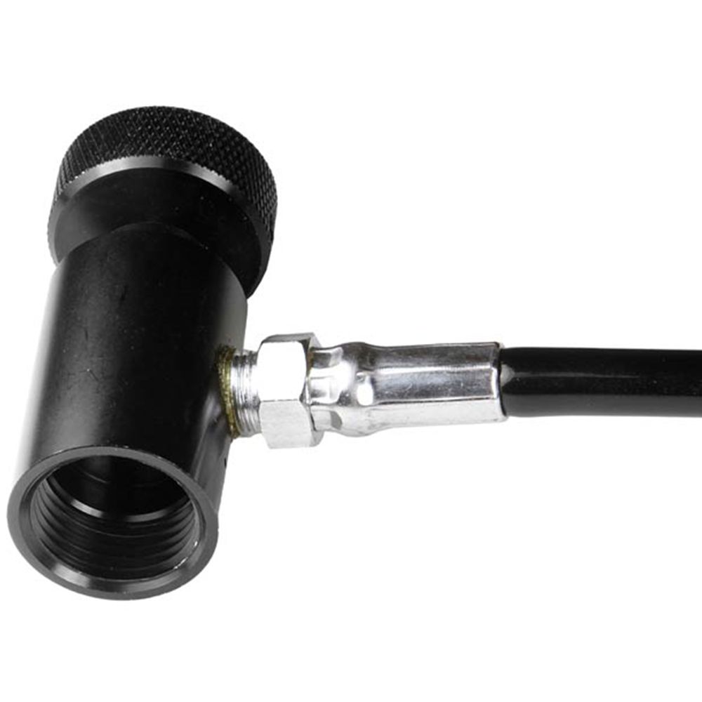 Easy to use, easy to attach Includes hose with bulk-fill CO2 tank connector, which connects to the gun's CO2 inlet Bulk-fill CO2 tank NOT included No more small powerlets. This adapter accepts any paintball bottle. Approx. 1300 shots with a 20-oz. tank &