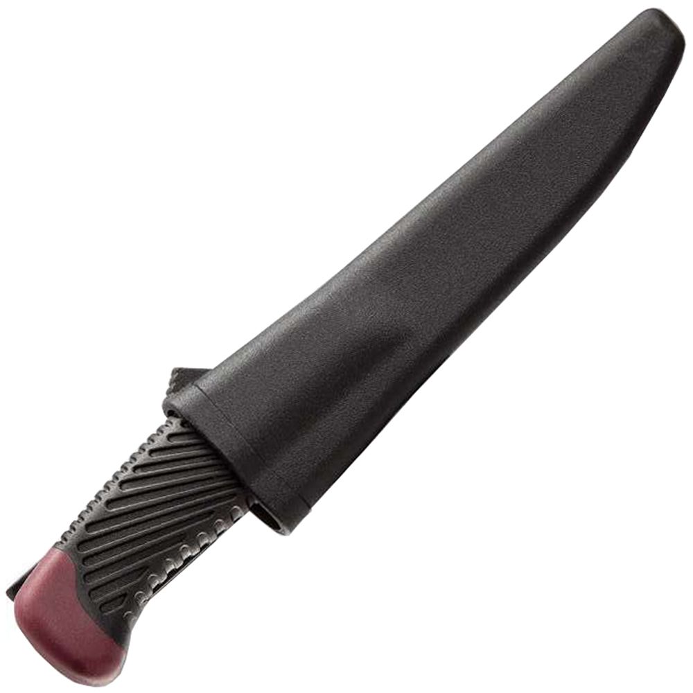 The Bushmaster Carbon Steel Utility Knife is the perfect addition to your tackle box, toolbox or even your bug-out bag. The thick, razor sharp, non-reflective 1065 carbon steel blade can be used for a wide range of cutting jobs - both large and small - like cleaning wild game, building shelters, splitting firewood and even everyday tasks. An overlaid black and maroon rubber handle with a checkered pattern allows for a firm grip, even in wet situations. It even includes an ABS sheath with belt clip to carry your knife when not in use.