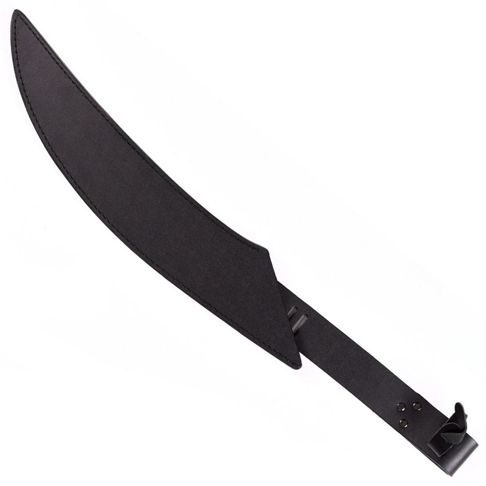 From the imagination of Kit Rae, we bring you the Mithlotok Short Sword to add to your collection. It features a silk screen design on its stainless steel full-tang blade. The handle is wrapped in brown leather and black, faux ray skin. It is 25" in overall length and a leather sheath is included.