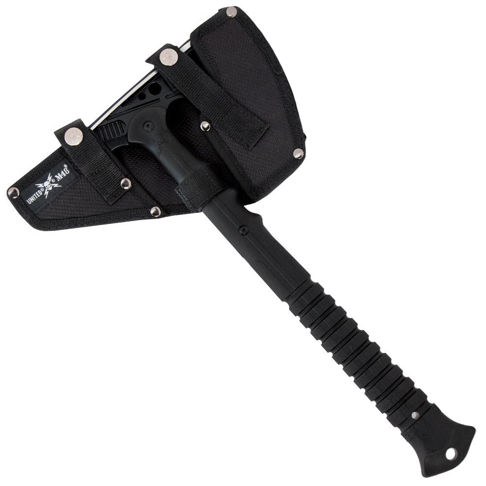 New from M48, the Destroyer Tactical Tomahawk is a masterpiece of the "Stronger. Sharper" design that you come to expect from United Cutlery. The cast stainless steel axe head has a black oxide coating to make it practically impervious. The 4 1/2" blade has a smooth satin finish and a razor-sharp edge. The handle is constructed of an almost indestructible injection molded nylon with a fiber fill. Special grooves are designed into the handle specifically so that paracord can be wrapped around it with ease. A new and improved nylon sheath is included and this tomahawk is 16" in overall length.