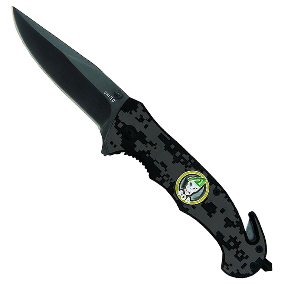 This Special Operations Association (SOA) folding knife is perfect for any SOA member or anyone who knows an SOA member. The 3 1/4" drop-point stainless steel blade is razor sharp and can slice through anything. This folder features a glass breaker, seatbelt cutter and a tip-up pocket clip for easy carrying. Linerlock mechanism and flipper to easily deploy the assisted opening blade.
