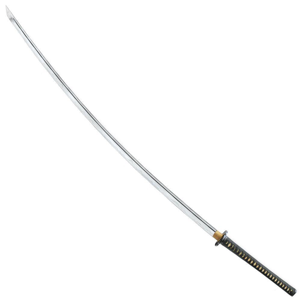 When you hold a Shikoto Hammer-Forged Longquan Master sword in your hand, you are holding the same weapon a warrior used more than 2,500 years ago. Using methods used by Bronze Age swordsmiths, the 49 3/8” 1060 high carbon steel blade has been hammer-forged and clay tempered to produce a visible hamon line. Differential hardening gives this magnificent sword a harder cutting edge and a softer spine, which is the hallmark of a high-quality weapon. The tsuba and handle fittings are of solid iron and the wooden handle has traditional cord wrapping over genuine, tea-dyed rayskin. A black lacquered and polished wooden scabbard with cord-wrapping houses the blade. Also included with the Shikoto Longquan Master Nodachi Sword is a certificate of authenticity with forging specifications, signed by the master swordsmith who crafted the blade.