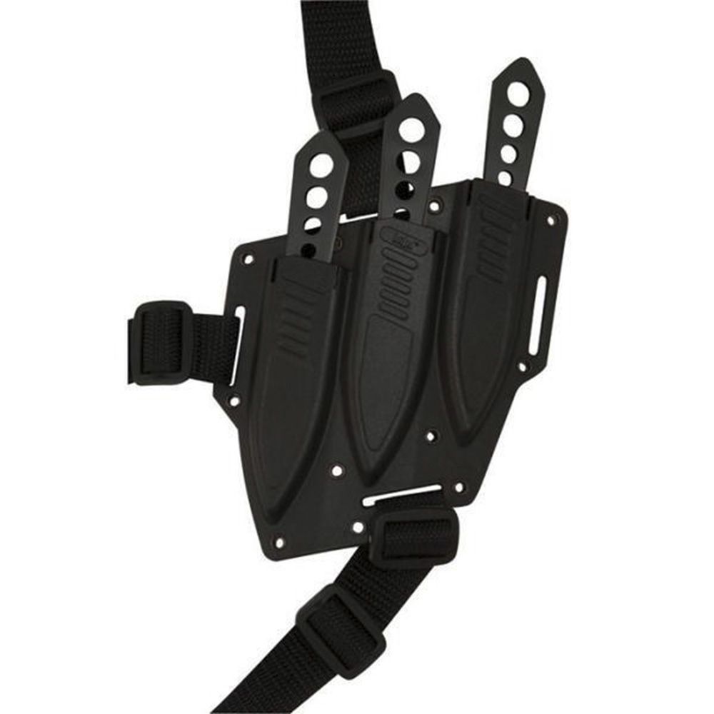 This Lightning Bolt Triple Throwing knife set is the first compact, easily concealable law enforcement throwing knife set ever. Each of the three throwing knives is black-coated for a durable finish and perfectly balanced for an accurate throw every time. The AUS-6 stainless steel blades are double-edged and razor-sharp so they’ll always make a deep impact on your target. Includes a hard ABS sheath that each knife locks into. The sheath can be worn on a belt or concealed using the included nylon shoulder harness.