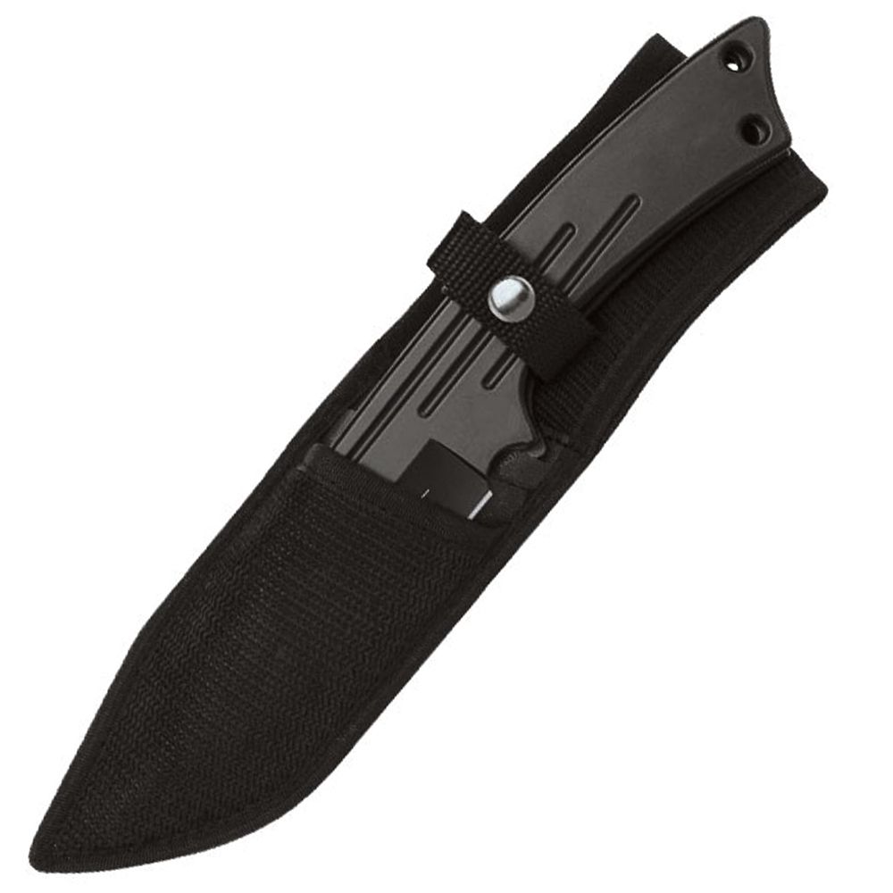 With a sleek, futuristic styling, this set of three throwing knives not only look great, but throw perfectly as well. Each knife is constructed from one solid piece of AUS-6 stainless steel with a corrosion resistant, non-glare black coating. A double-edged blade has been laser etched with the Wesley Hibben Custom Design logo and the handle features grooves for aerodynamic performance. Each set of three knives is perfectly balanced and includes a durable nylon belt sheath for carrying your new Wesley Hibben Cloak Throwing Knives.