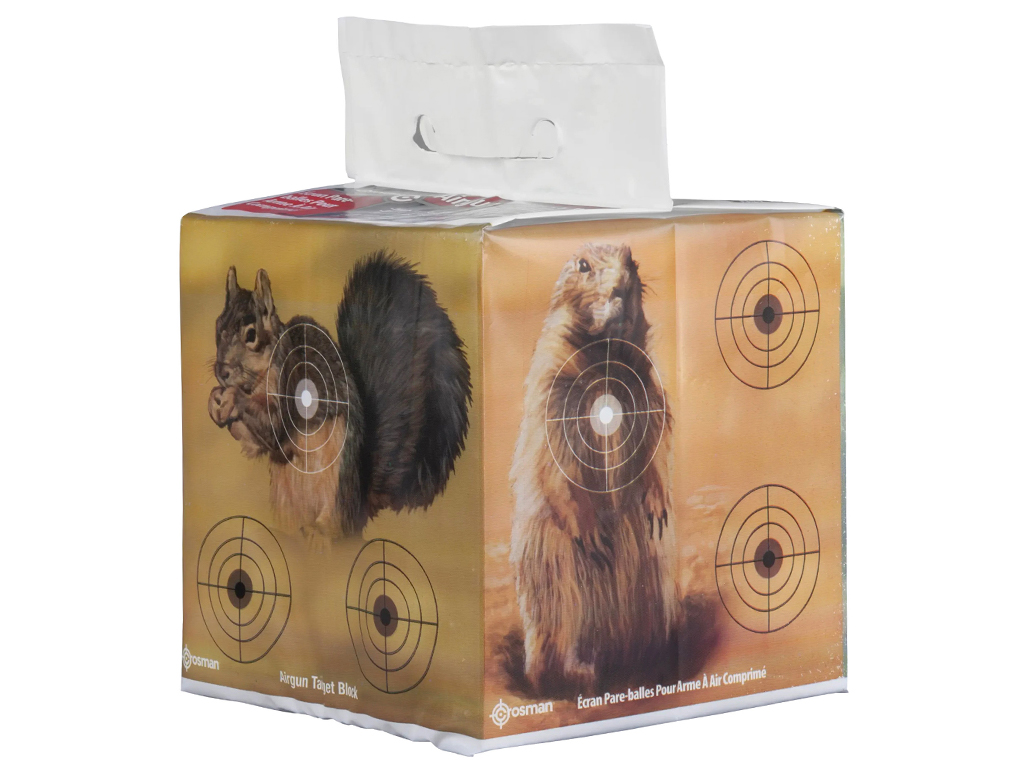 Each of its four sides displays a different printed varmint design, allowing shooters to rotate the cube for a fresh aiming point and extended usability without replacing paper targets.