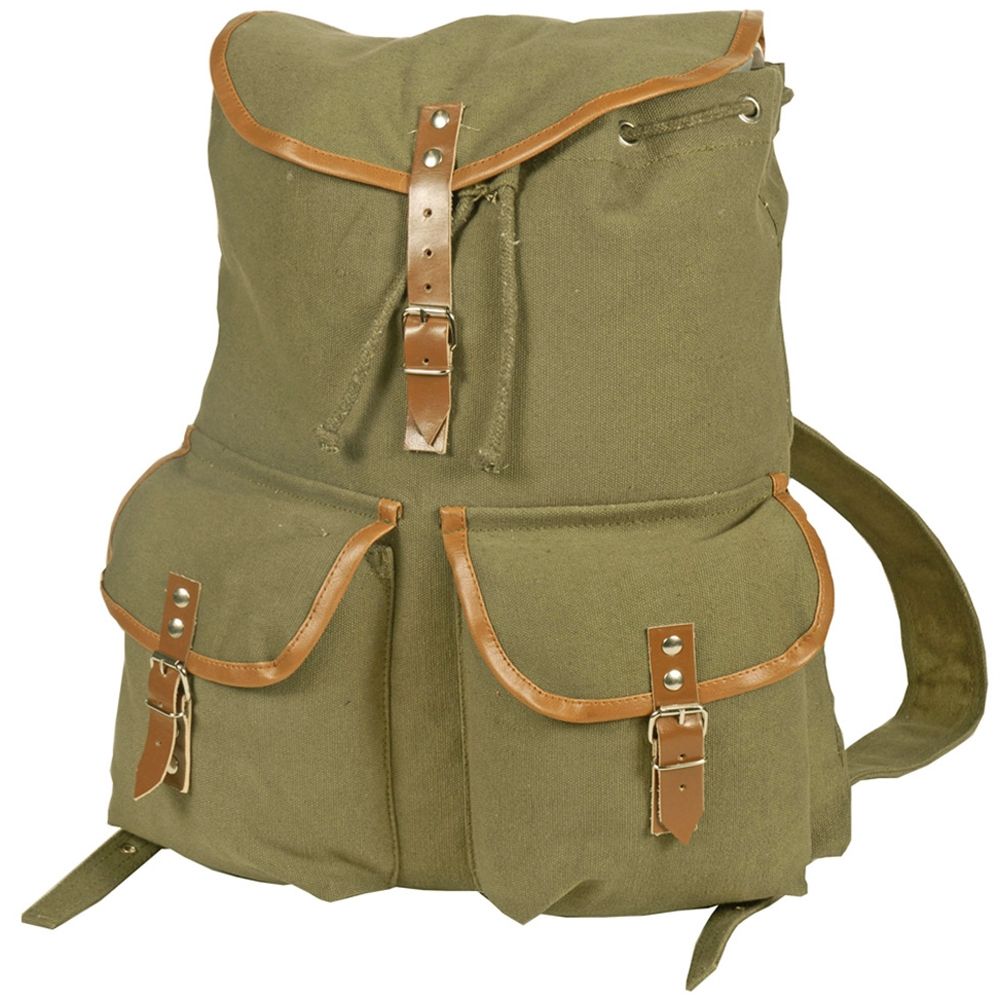 Feel a blast from the past with the Vintage Canvas Daypack. This pack is designed with one large drawstring compartment and two small outside pockets for smaller items. A stylish leather pocket closure ensures that all your essentials are safe and within easy reach. The pack comes with a tradition of quality that made it perfect for travel, city strolls, and outdoor adventures. It measures 432 mm (17 inches) x 483 mm (19 inches).