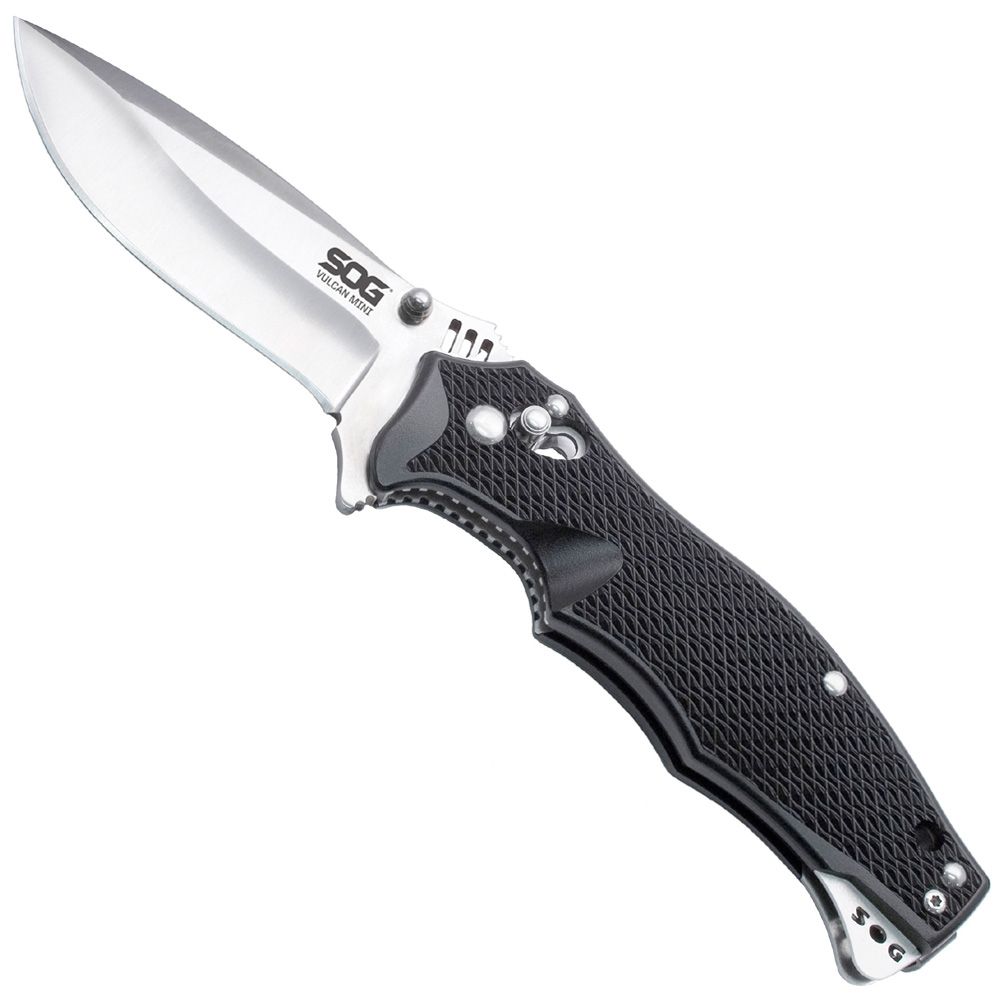 Built upon the M61 Vulcan’s reputation of speed, power, and versatility, the SOG Vulcan is also formidable with a powerful strength of construction. There is nothing weak about the Vulcan. For instance, our patented Arc-Lock can hold over 1000 lbs. of force. The full steel liners encased in glass reinforced nylon (GRN) handles give the knife rigidity and durability. The Vulcan Mini’s blade is a full .125" thick and includes a double thumb stud and kick for quick, ambidextrous deployment and use. Combining the usability and construction of the knife with a durable VG-10 stainless steel blade make this folder a great addition to the Vulcan name.