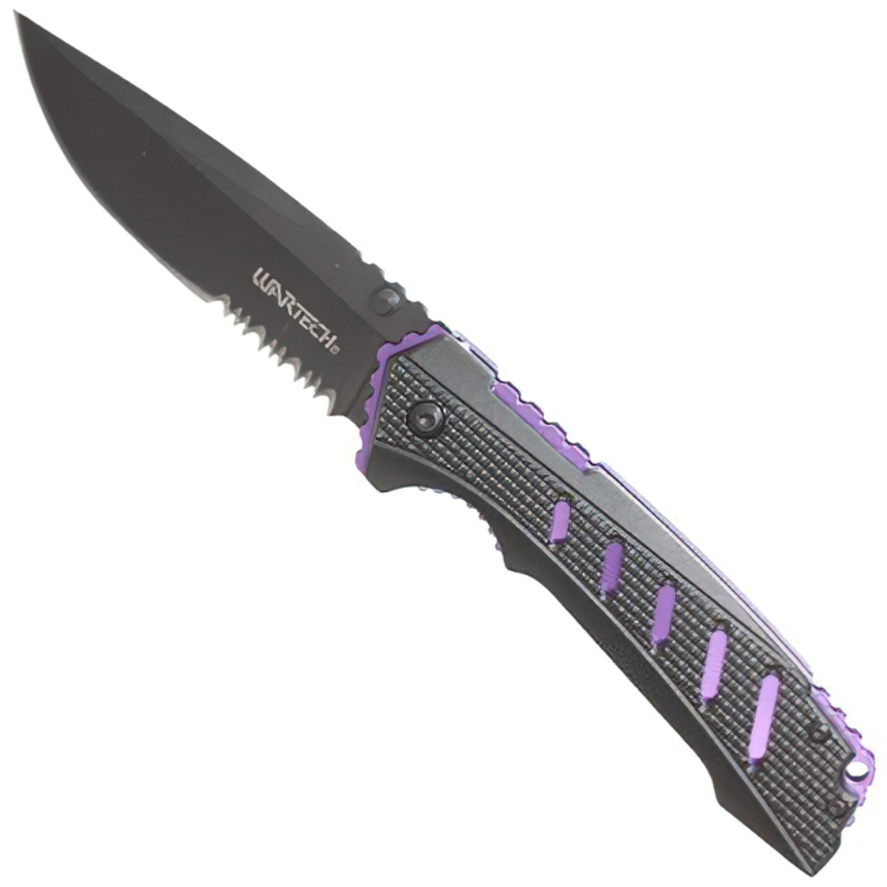 Wartech Spring-Assisted Folding Knife. 3.5" Drop Point Stainless Steel Partially-Serrated Blade.