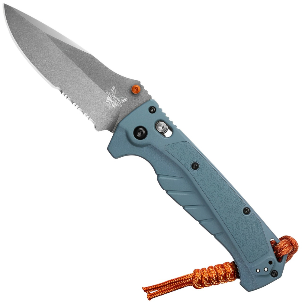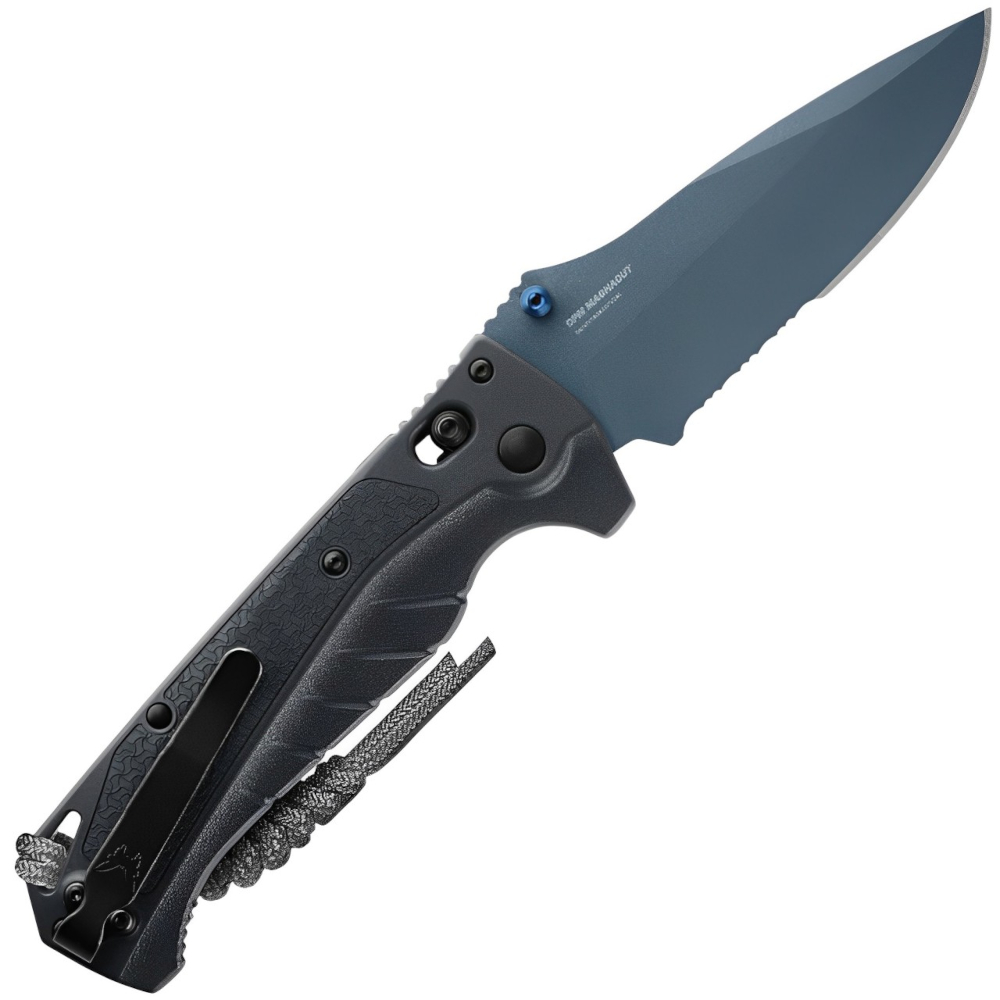 The Benchmade Undercurrent fixed blade is the perfect knife when you're out on the water. More than a dive knife, its part serrated MagnaCut blade keeps cutting when you need it most. Perfect for cutting nets, rope, bait and braided fishing line this blade will also resist corrosion from it all. A Santoprene handle is solid, durable and impervious to the elements. Add the Undercurrent fixed blade for a go-to knife anywhere from the banks to the depths.