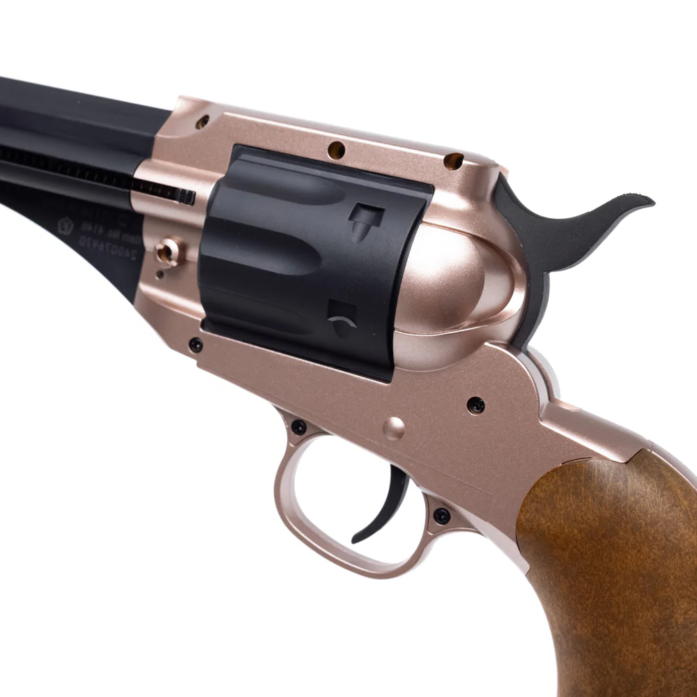 Relive frontier heritage with the Wild West 1858 CO2 BB Revolver Kit by Barra. This CO2-powered BB pistol captures the classic look and feel of an 1858 revolver while delivering modern shooting reliability. The fixed cylinder and side-load 18-round internal magazine make reloading quick and simple, while the crisp single-action trigger ensures each shot is satisfying. This ready-to-shoot kit has everything you need to start plinking right out of the box.