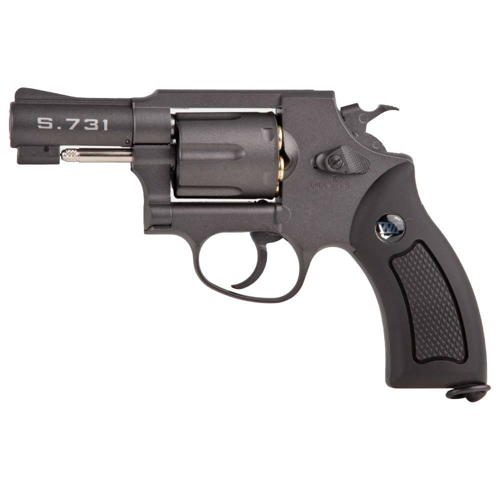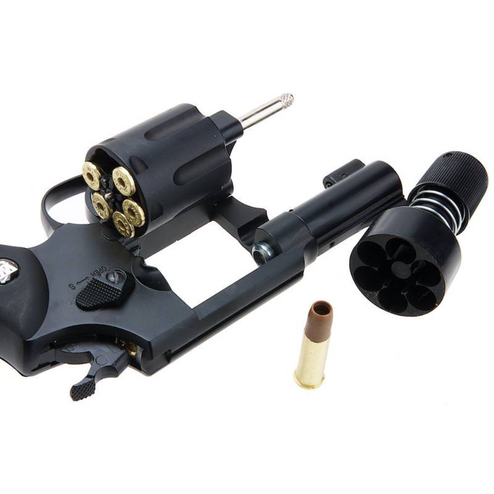 The Gun Heaven 731 Sheriff is a 2.5 revolver that shoots in both double and single action. The gun faithfully replicates the full form and function of real revolvers as it even uses individual shells to house each of its six BBs it shoots.