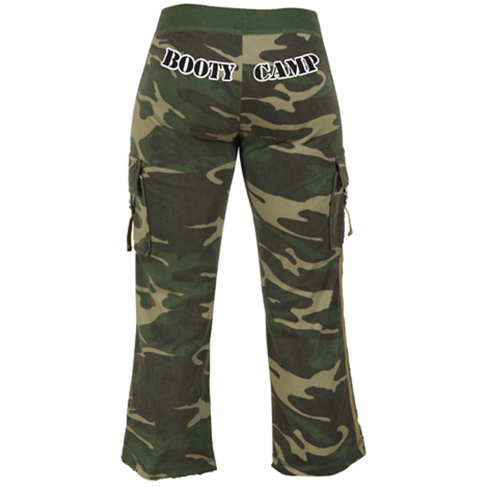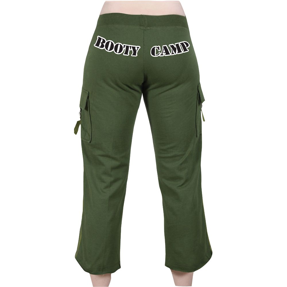 'Booty Camp' Print On Back , Accent Stripes On Legs , 100% Washed Cotton , 2 Side Cargo Pockets w/ Buckle , Knit Waist w/ Drawstring