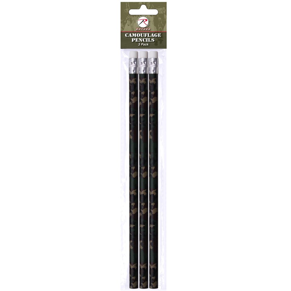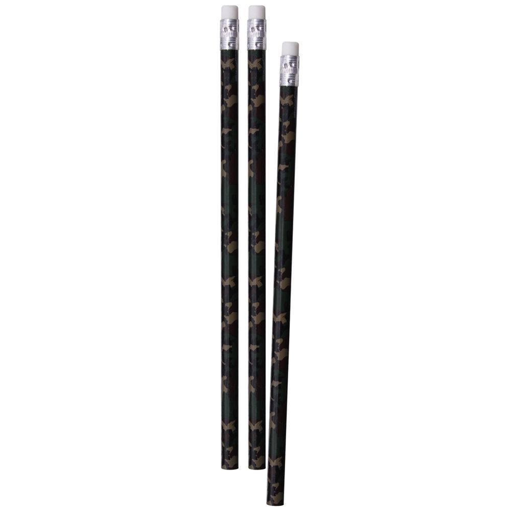 Woodland Camo Pencils are great for school or the office. The pencils feature a 7.25" basswood body and rubber eraser and come 3 to a pack.